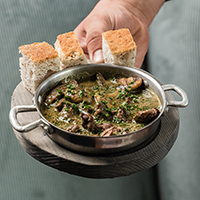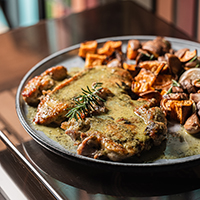 Cooked to perfection, glazed with garlic butter, served with roasted mini potatoes, mushroom and garlic, rosemary flavored