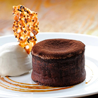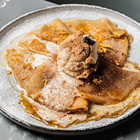 Pan seared crepe suzette with grand-marnier, orange juice and vanilla ice cream