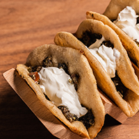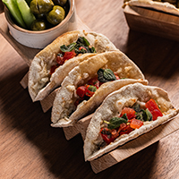 3 mini Zaatar mana'ish filled with labneh, served with olives and vegetables