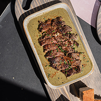 French style slices of grilled beef tenderloin glazed with special herbs butter sauce, served with French fries and crispy rustic baguette