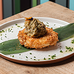 Crispy Mediterranean chicken glazed with wild herbs salsa