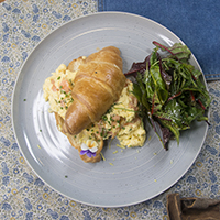 Croissant filled with smoked salmon and scrambled eggs dill flavored