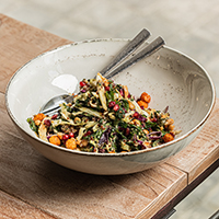 Rocca, fresh thyme, roasted pumpkin, frikeh, beetroot, avocado, almond, feta cheese, pomegranate, honey balsamic dressing