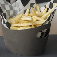 Pain brioche, chicken breasts, garlic mayo, lettuce, mushroom, pickles served with side salad and fries